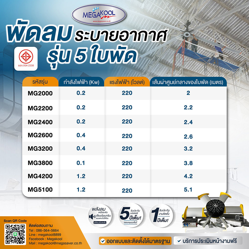 พัดลมระบายอากาศ รุ่น 5 ใบพัด กระแสลมกว้าง ประหยัดพลังงาน